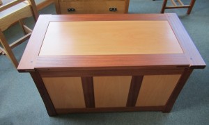 Recently, a potential client asked for two blanket chests. The order did not work out but it inspired me two come up with two models for the showroom. One is a traditional dovetailed box and the other, a frame and panel with Greene & Greene features.