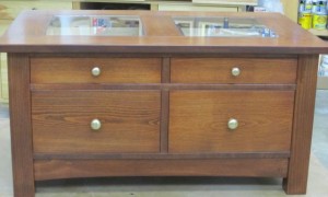 A recent client wanted to display some treasured items under glass in a coffee table. Here is how it turned out. The wood is European Beech with a Candlelite gel stain.